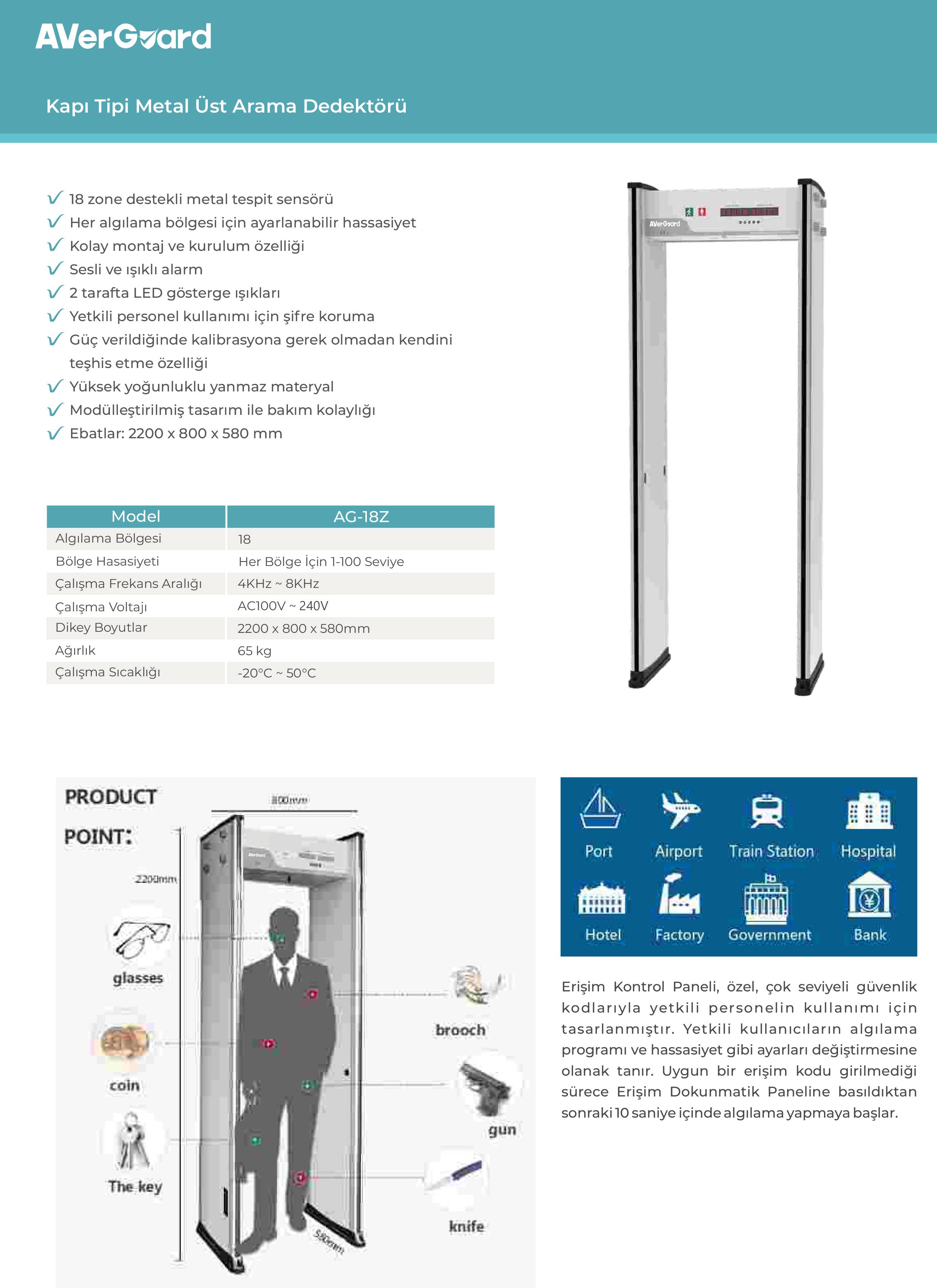 (90000.30000) AVERGUARD AG-18 KAPI TİPİ METAL ÜST ARAMA DEDEKTÖRÜ